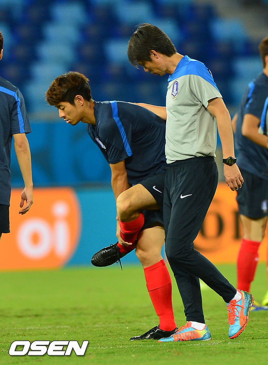 하대성이 예상치 못한 일을 당했다. 17일(이하 한국시간) 브라질 쿠이아바에 위치한 아레나 판타날에서 열린 공식 훈련 도중 왼쪽 발목의 통증을 호소한 것. 하대성은 러닝 이후 가벼운 패스를 주고 받던 과정에서 부상을 당해 벤치로 나가 의무팀의 치료를 받았다.