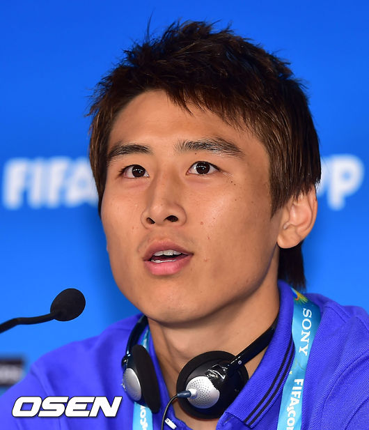 [OSEN=쿠이아바 (브라질), 민경훈기자] 17일(이하 한국시간) 홍명보감독이 이끄는 한국 축구대표팀이 2014 브라질 월드컵 조별리그 첫 경기가 열리는 쿠이아바의 아레나 판타날에서 러시아 전을 하루 앞두고 공식 훈련을 가졌다. 훈련 후 열린 대한민국 기자회견에서 구자철이 질문에 답하고 있다.