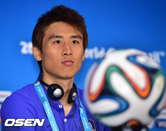 [OSEN=쿠이아바 (브라질), 민경훈기자] 17일(이하 한국시간) 홍명보감독이 이끄는 한국 축구대표팀이 2014 브라질 월드컵 조별리그 첫 경기가 열리는 쿠이아바의 아레나 판타날에서 러시아 전을 하루 앞두고 공식 훈련을 가졌다. 훈련 후 열린 대한민국 기자회견에서 구자철이 생각에 잠겨있다.
