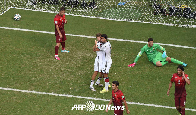 독일은 17일 브라질 사우바도르 아레나 폰테 노바에서 벌어진 G조 첫 경기 포르투갈전에서 전반에만 3골을 넣으며 4-0 완승을 거뒀다. 독일은 전반 11분 터진 토마스 뮐러의 선제골을 시작으로 전반 32분 마츠 후멜스의 추가골, 전반 추가시간 뮐러의 세 번째 골까지 터졌다.