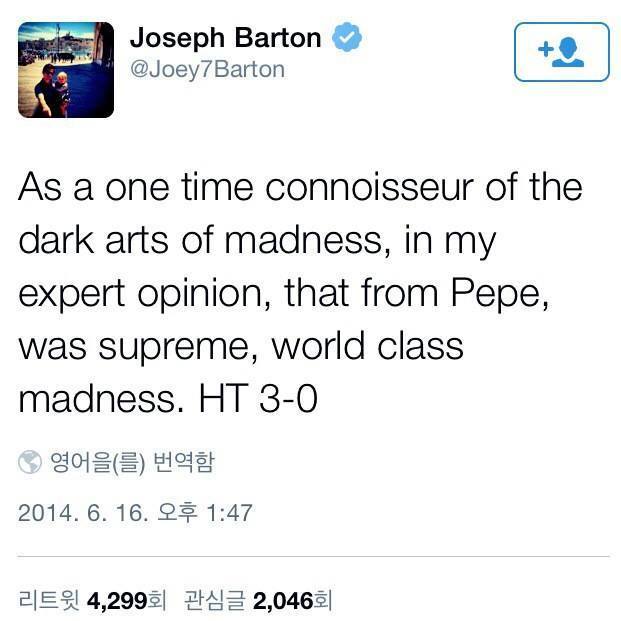 악동으로 유명한 조이 바튼이 촌철살인을 가했다. 바튼은 자신의 트위터에 "과거 악동이었던 나의 전문적인 견해로 볼 때 페페의 행동은 세계 최고 수준의 미친 행동이었다"고 페페의 박치기를 조롱했다.