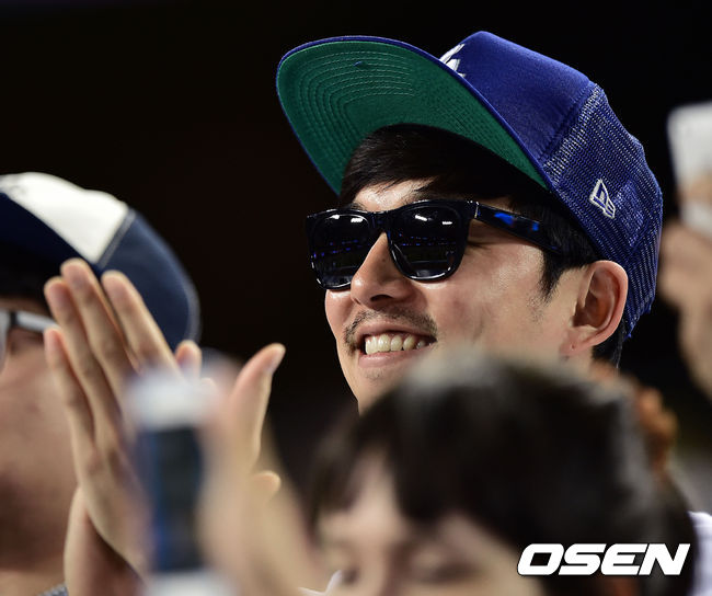공유가 더그아웃으로 들어오는 다저스 선수들에게 박수를 치고 있다./youngrae@osen.co.kr