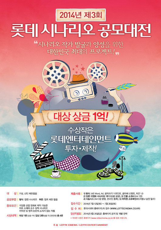 2014년 제 3회 롯데 시나리오 공모대전이 개최된다.