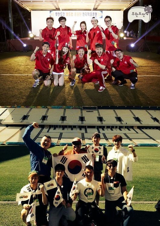 '무한도전'의 한 관계자는 17일 오후 OSEN에 "붉은 악마가 주최한 공연 중 잠시 마련된 시간에 무대에 오른다. 붉은 악마의 응원에 방해되지 않는 선에서 진행될 예정이다. 이후 원활한 응원을 위해 멤버들은 다른 곳에서 축구 관람을 할 계획이다"라고 전했다.