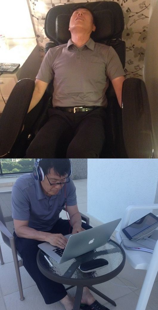 사진 속에는 차범근의 다양한 모습이 담겨 있다. 슬리퍼를 신은 차범근이 안경을 쓰고 노트북을 하는 모습에서 동네 아저씨 같은 친근함이 느껴진다.