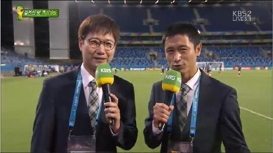 이영표 해설위원은 17일, 쿠이아바의 판타나우 경기장을 직접 찾아 적응 훈련을 하고 있는 한국 대표팀 선수들을 배경으로 조우종 아나운서와 함께 러시아전에 대해 전망했다.