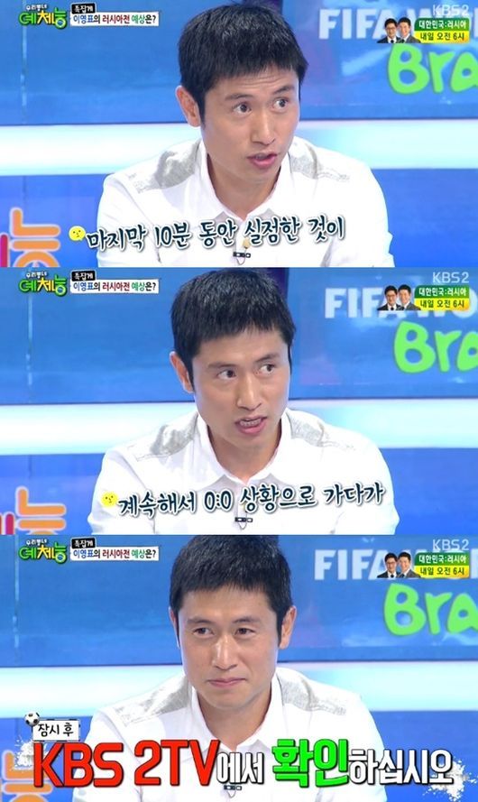 이광용 아나운서는 "러시아가 벨기에보다 어려운 상대라고 본다. 이청용이 동점골을 넣어서 1대 1 무승부를 예상한다"고 전했다.