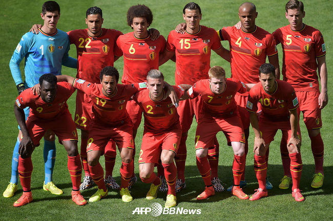 경기에 앞서 벨기에 베스트 11 선수들이 포즈를 취하고 있다.