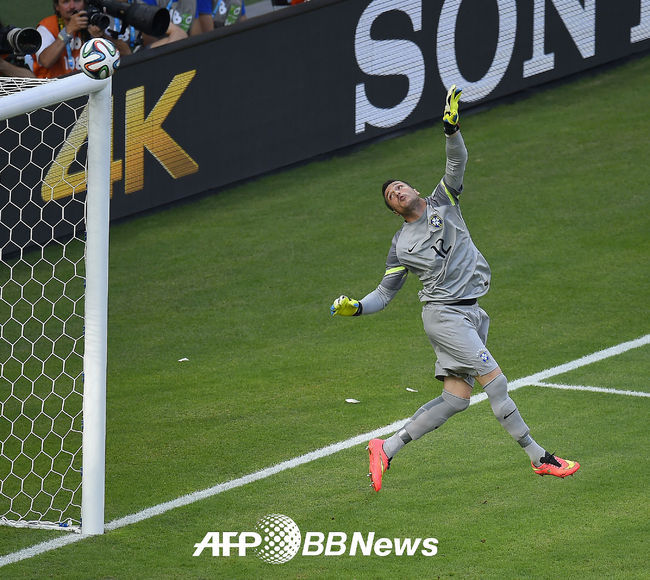 전반 브라질 세자르 골키퍼고 볼을 처리하고 있다.