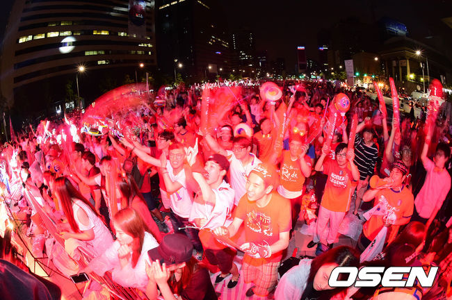 광화문광장을 찾은 축구팬들이 응원을 펼치고 있다.