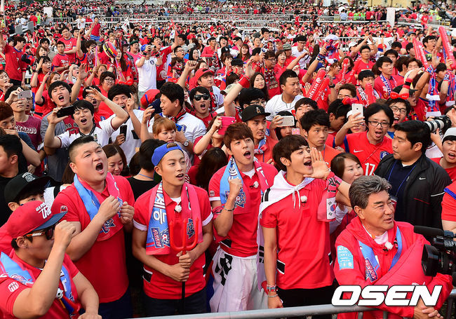 한국과 러시아의 2014 FIFA 월드컵 첫 경기를 앞두고 18일 오전 서울 광화문광장에서 거리응원이 열렸다.