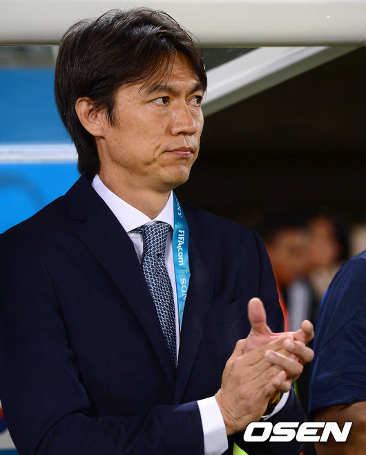 경기에 앞서 대한민국 홍명보 감독이 선수들에게 박수를 보내고 있다.