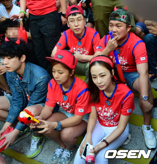 SBS 예능 룸메이트 팀이 광화문 광장을 찾아 응원을 펼치고 있다.