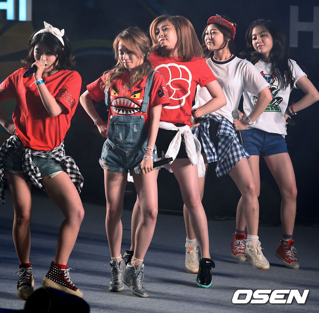 한국과 러시아의 2014 FIFA 월드컵 첫 경기를 앞두고 18일 오전 서울 삼성동 코엑스 사거리 영동대로에서 진행된 길거리 응원전에서 레이디스코드가 멋진 무대를 펼치고 있다.