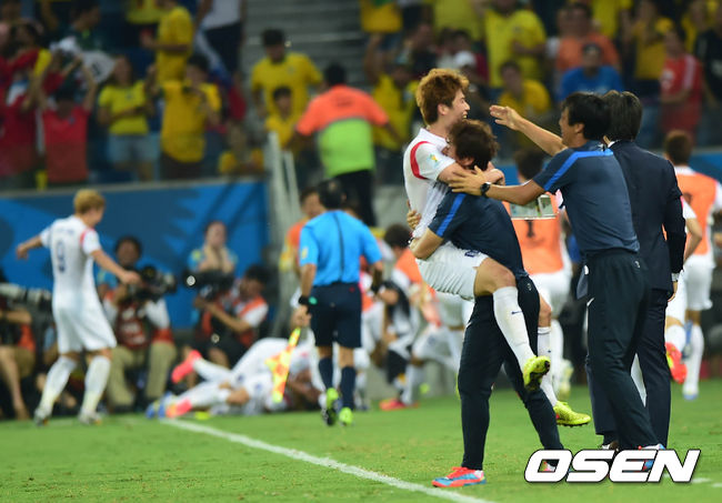 18일(이하 한국시간) 브라질 쿠이아바 아레나 판타날에서 2014 브라질 월드컵 조별리그 H조 한국과 러시아의 경기 후반 이근호가 선제골을 넣고 환호하고 있다.