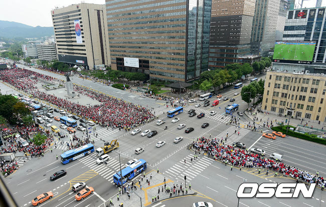 한국과 러시아의 2014 FIFA 월드컵 첫 경기를 앞두고 18일 오전 서울 광화문광장에서 거리응원이 열렸다.