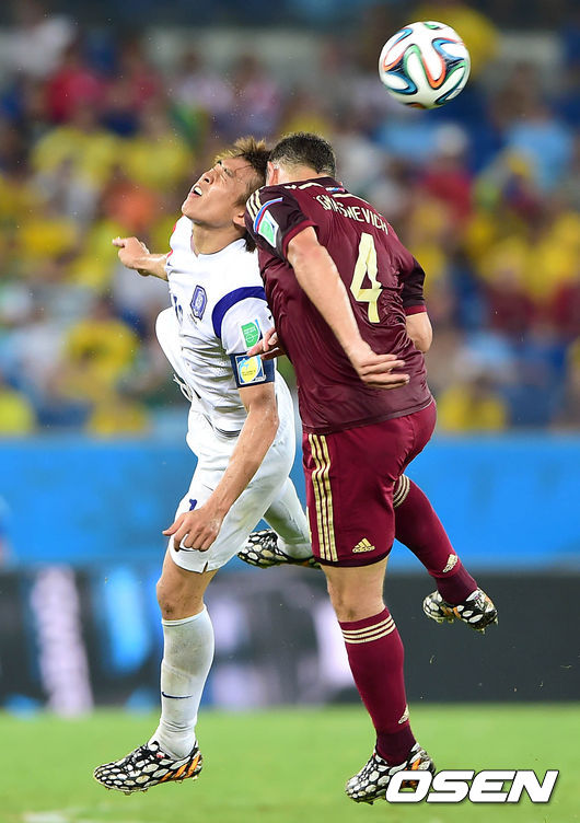 홍명보 감독이 이끄는 축구국가대표팀은 18일 오전 7시(이하 한국시간) 브라질 쿠이아바 아레나 판타날에서 벌어진 러시아와의 H조 첫 경기서 1-1로 비겼다. 한국은 후반 23분 터진 이근호의 선제골을 지키지 못하고 후반 28분 케르자코프에게 동점골을 허용했다. 첫 승이 눈앞에 있던 한국은 승점 1점 추가에 만족해야 했다. 한국의 월드컵 개막전 4연승도 아쉽게 불발됐다.