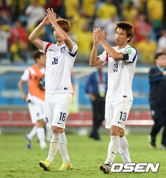 경기 종료 후 대한민국 기성용과 구자철이 관중석을 향해 박수를 보내고 있다./rumi@osen.co.kr