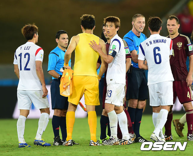 홍명보 감독이 이끄는 축구국가대표팀은 18일 오전 7시(이하 한국시간) 브라질 쿠이아바 아레나 판타날에서 벌어진 러시아와의 H조 첫 경기서 1-1로 비겼다. 한국은 후반 23분 터진 이근호의 선제골을 지키지 못하고 후반 28분 케르자코프에게 동점골을 허용했다. 첫 승이 눈앞에 있던 한국은 승점 1점 추가에 만족해야 했다. 한국의 월드컵 개막전 4연승도 아쉽게 불발됐다.