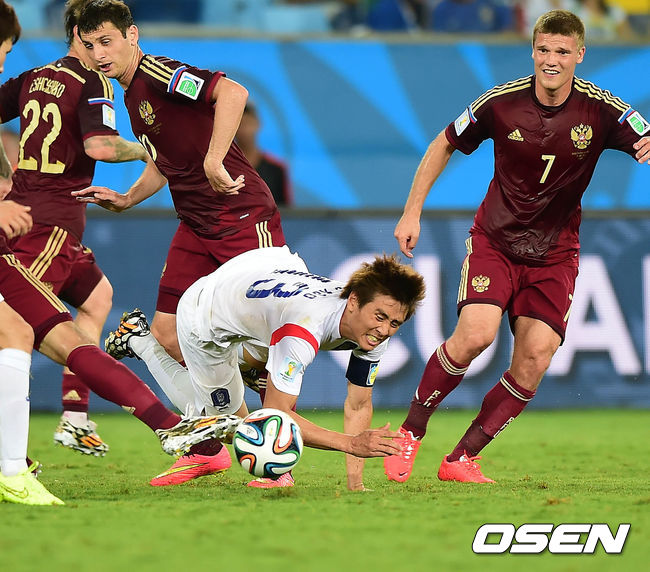 홍명보 감독이 이끄는 축구국가대표팀은 18일 오전 7시(이하 한국시간) 브라질 쿠이아바 아레나 판타날에서 벌어진 러시아와의 H조 첫 경기서 1-1로 비겼다. 한국은 후반 23분 터진 이근호의 선제골을 지키지 못하고 후반 28분 케르자코프에게 동점골을 허용했다. 첫 승이 눈앞에 있던 한국은 승점 1점 추가에 만족해야 했다. 한국의 월드컵 개막전 4연승도 아쉽게 불발됐다.