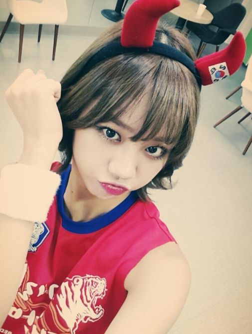 공개된 사진 속 혜리는 붉은 악마 머리띠를 하고 주먹을 불끈 쥔 모습이다.