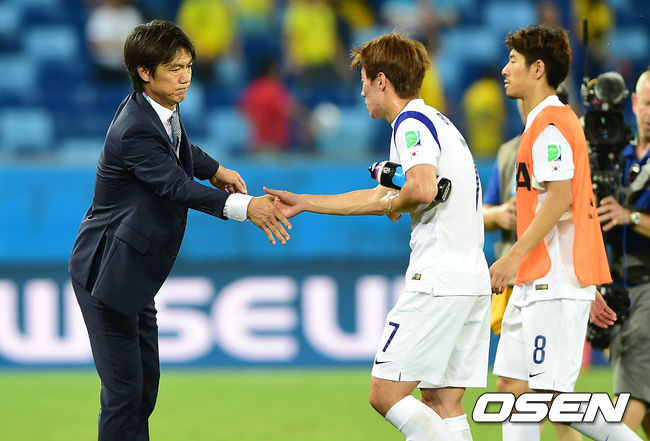 경기 종료 후 대한민국 홍명보 감독이 선수들과 악수를 나누고 있다./rumi@osen.co.kr