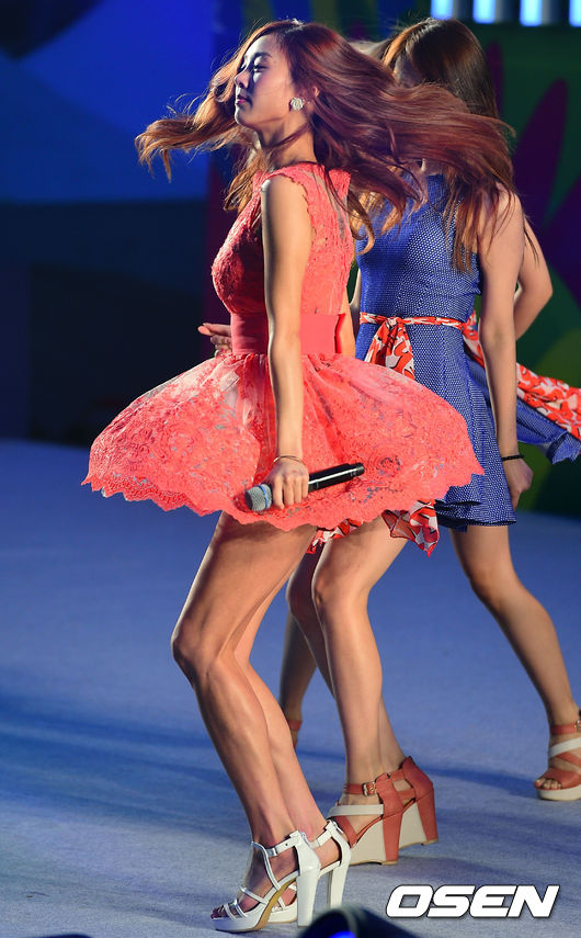 한국과 러시아의 2014 FIFA 월드컵 첫 경기가 열린 18일 오전 서울 삼성동 코엑스 사거리 영동대로에서 진행된 길거리 응원전, 가수 지나가 멋진 무대를 펼치고 있다.