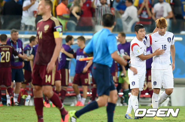 홍명보 감독이 이끄는 축구국가대표팀은 18일 오전 7시(이하 한국시간) 브라질 쿠이아바 아레나 판타날에서 벌어진 러시아와의 H조 첫 경기서 1-1로 비겼다. 한국은 후반 23분 터진 이근호의 선제골을 지키지 못하고 후반 28분 케르자코프에게 동점골을 허용했다. 첫 승이 눈앞에 있던 한국은 승점 1점 추가에 만족해야 했다. 한국의 월드컵 개막전 4연승도 아쉽게 불발됐다.