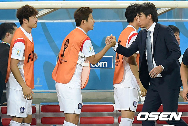 경기 종료 후 대한민국 홍명보 감독이 선수들과 악수를 나누고 있다./rumi@osen.co.kr