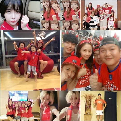 많은 스타들이 태극전사를 상징하는 빨간 티셔츠를 입은 응원 사진으로 대한민국 국가대표팀의 선전을 기원했다.