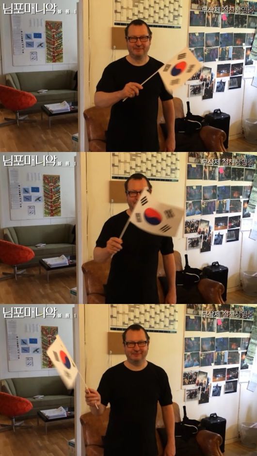 덴마크 출신 거장 라스 폰 트리에 감독이 태극기를 흔들었다.