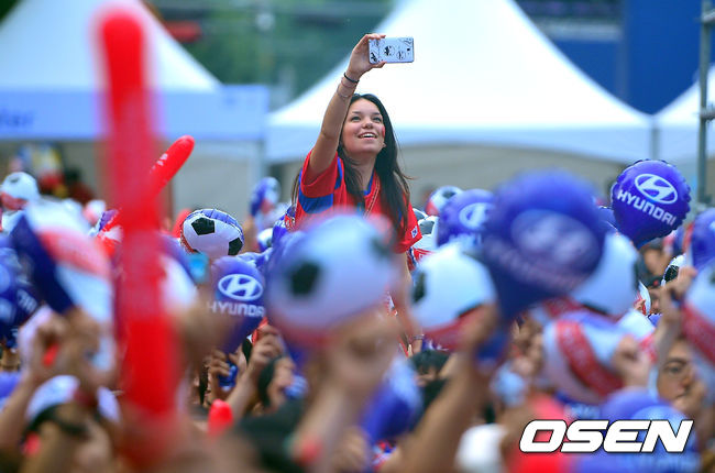 또한 싸이는 '롸잇 나우'를 시작으로 '연예인', '예술이야', '흔들어주세요', '챔피언', '위 아 더 원(We Are The One)', '강남스타일' 등의 무대를 꾸몄다. 약 40분 동안 진행된 싸이의 응원 공연은 마치 콘서트를 보는 듯했다. 특히 마지막 '강남스타일' 무대에서는 붉은악마와 다함께 말춤을 추는 인상적인 장면을 연출하기도 했다. '공연의 신'이라 불리는 만큼 싸이의 응원은 뜨겁고 열정적이었다. / soul1014@osen.co.kr