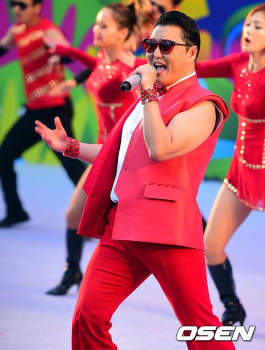 또한 싸이는 '롸잇 나우'를 시작으로 '연예인', '예술이야', '흔들어주세요', '챔피언', '위 아 더 원(We Are The One)', '강남스타일' 등의 무대를 꾸몄다. 약 40분 동안 진행된 싸이의 응원 공연은 마치 콘서트를 보는 듯했다. 특히 마지막 '강남스타일' 무대에서는 붉은악마와 다함께 말춤을 추는 인상적인 장면을 연출하기도 했다. '공연의 신'이라 불리는 만큼 싸이의 응원은 뜨겁고 열정적이었다. / soul1014@osen.co.kr