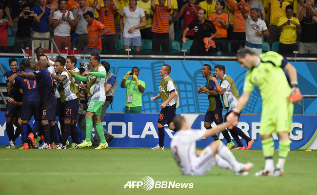 그런데 불과 4년 뒤 브라질에서 입장이 뒤바뀌었다. 적어도 조별리그 첫 판까지는 4팀의 희비가 극명하게 엇갈렸다. 운명의 장난이었을까. '우승팀' 스페인과 '준우승팀' 네덜란드가 B조에 속해 스타트를 끊었다. 모두가 스페인의 우위를 점쳤다. 많은 전문가들은 세대교체를 단행한 네덜란드보다 최근 메이저 3개 대회(유로 2008, 2010 남아공월드컵, 유로 2012)를 제패한 스페인의 손을 들어줬다.