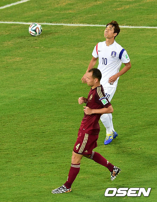 홍명보 감독이 이끄는 축구국가대표팀은 18일 오전 7시(이하 한국시간) 브라질 쿠이아바 아레나 판타날에서 벌어진 러시아와의 H조 첫 경기서 1-1로 비겼다. 한국은 후반 23분 터진 이근호의 선제골을 지키지 못하고 후반 29분 케르자코프에게 동점골을 허용했다. 첫 승이 눈앞에 있던 한국은 승점 1점 추가에 만족해야 했다. 한국의 월드컵 개막전 4연승도 아쉽게 불발됐다.