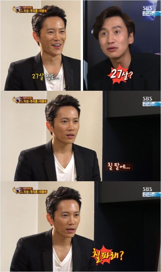 지성은 18일 방송된 SBS 연예정보프로그램 ‘한밤의 TV연예’에서 동안이라고 생각하느냐는 질문에 “그렇다. 27살까지 보이지 않나”라고 말했다.