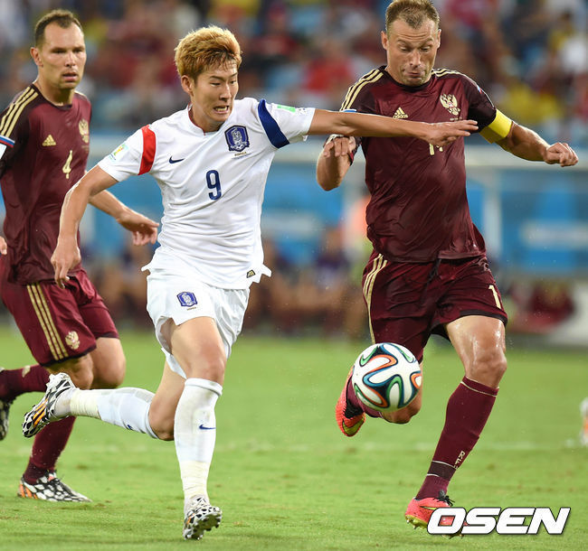 홍명보 감독이 이끄는 축구국가대표팀은 18일 오전 7시(이하 한국시간) 브라질 쿠이아바 아레나 판타날에서 벌어진 러시아와의 H조 첫 경기서 1-1로 비겼다. 한국은 후반 23분 터진 이근호의 선제골을 지키지 못하고 후반 28분 케르자코프에게 동점골을 허용했다. 첫 승이 눈앞에 있던 한국은 승점 1점 추가에 만족해야 했다. 한국의 월드컵 개막전 4연승도 아쉽게 불발됐다.
