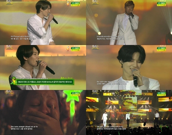 이날 세 사람은 'The Girl From Ipanema(이파네마의 소녀)'를 불렀다. 태민을 시작으로 차례로 등장한 종현과 성규는 달콤한 보이스로 감미롭게 곡을 소화 팬들을 열광시켰다. 특히 이들의 무대에 눈물을 보이는 팬들의 모습이 포착돼 눈길을 끌었다.