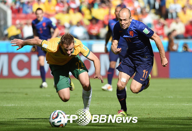 호주는 지난 14일 조별리그 B조 1차전 칠레와의 경기에서 1-3으로 패했다. 남은 상대는 네덜란드, 스페인으로 매 경기 어려움을 극복해야 하는 상황이다. 이에 비해 네덜란드는 스페인과의 첫 경기서 5-1 대승을 거두면서 첫 단추를 잘 꿰맸다. 스페인전에서 로벤과 로빈 반 페르시(31, 맨체스터 유나이티드)가 각각 2골씩을 기록하며 최고의 공격력을 자랑한 바 있다.