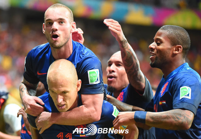네덜란드는 19일(이하 한국시각) 브라질 포르투 알레그레의 에스타디오 베이라리오에서 열리는 2014 브라질월드컵 B조 2차전 경기서 데파이의 역전골로 3-2를 만들었다.