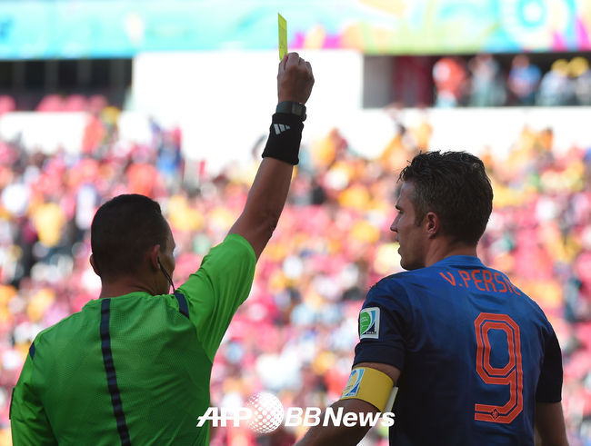 후반 네덜란드 반 페르시가 경고를 받고 있다.