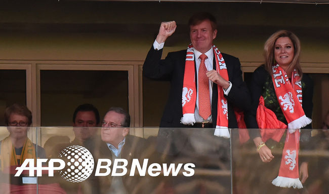 네덜란드 빌럼 알렉산더르 국왕과 막시마 왕비가 응원을 하고 있다. / photo@osen.co.kr < 사진 > ⓒAFPBBNews = News1