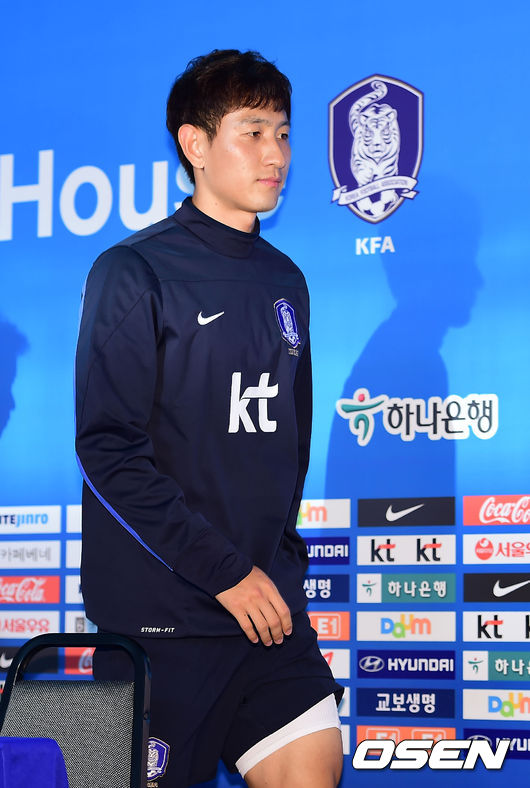 19일 오전(이하 한국시간) 홍명보 감독이 이끄는 축구국가대표팀이 브라질 이구아수의 페드로 바소경기장에서 회복 훈련을 가졌다. 지동원이 훈련 전 인터뷰를 한 후 퇴장하고 있다.