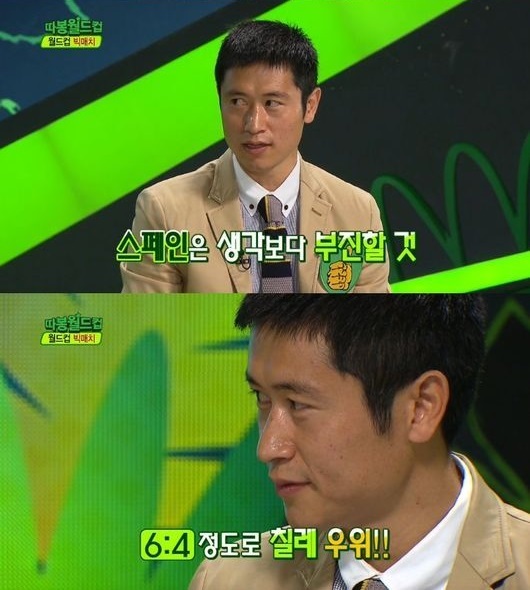 이영표는 지난달 22일 방송된 KBS 2TV 월드컵 특집 프로그램 ‘따봉 월드컵’에서 가장 주목할 만한 경기로 스페인-칠레전을 꼽으며 “스페인이 몰락할 것”이라고 밝혔다.