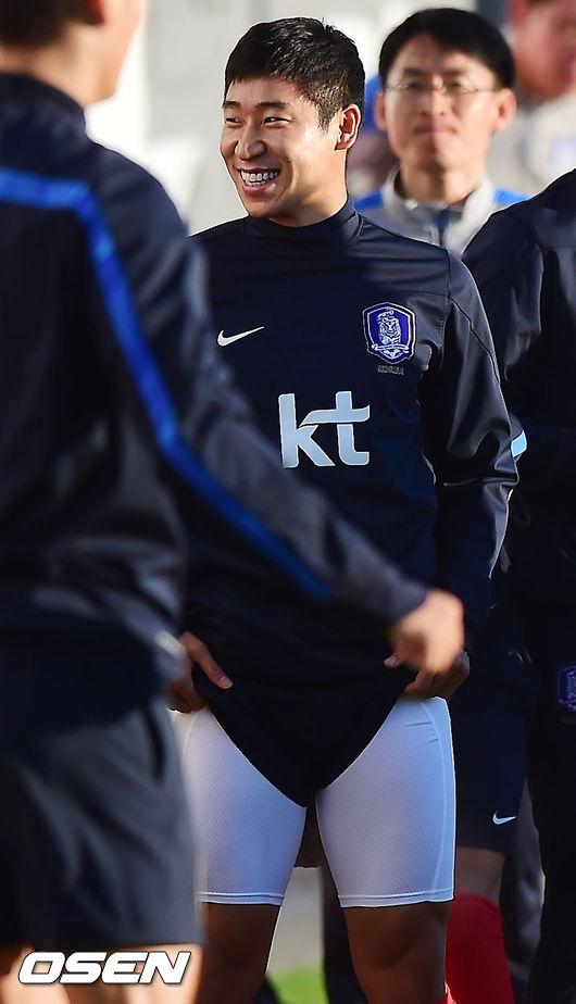 19일 오전(이하 한국시간) 홍명보 감독이 이끄는 축구국가대표팀이 브라질 이구아수의 페드로 바소경기장에서 회복 훈련을 가졌다. 이근호가 바지를 들어올리며 환하게 웃고 있다.
