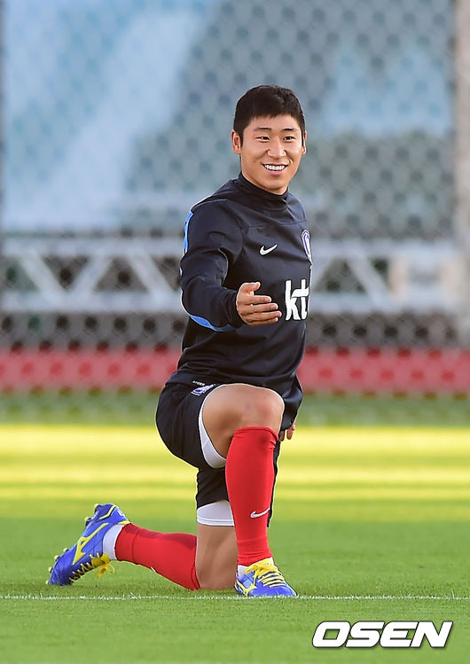 19일 오전(이하 한국시간) 홍명보 감독이 이끄는 축구국가대표팀이 브라질 이구아수의 페드로 바소경기장에서 회복 훈련을 가졌다. 이근호가 회복 훈련을 하며 환하게 웃고 있다.