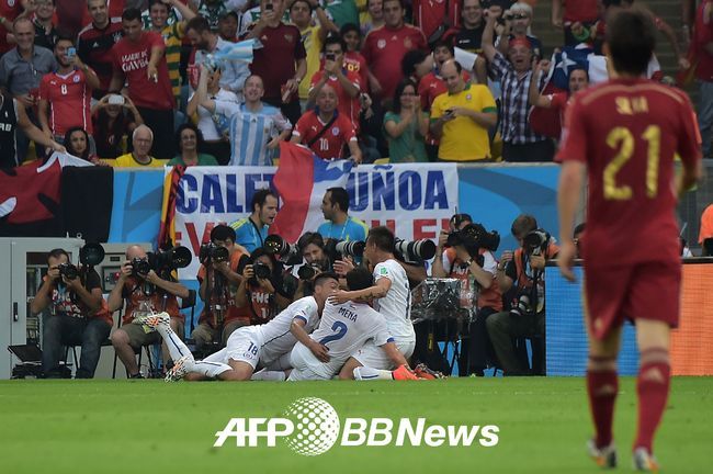 비센테 델 보스케 감독이 이끄는 스페인은 19일(이하 한국시간) 브라질 리우 데 자네이루의 에스타디오 두 마라카낭에서 열린 2014 브라질월드컵 조별리그 B조 2차전 칠레와 경기서 0-2로 패했다. 이날 패배로 2패를 기록한 스페인은 나란히 2승을 거둔 네덜란드와 칠레에 밀려 조별리그 탈락의 수모를 겪었다.