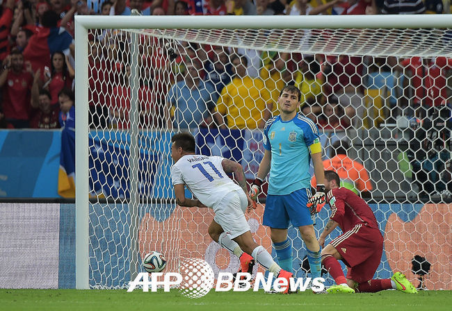 스페인은 19일(이하 한국시간) 리우 데 자네이루의 마라카낭 스타디움에서 열린 칠레와의 조별리그 B조 두 번째 경기에서 0-2로 지면서 2연패로 조별리그 탈락이 확정됐다. 전반 20분 바르가스, 전반 43분 아랑기즈에게 연속골을 얻어맞은 끝에 0-2로 끌려갔고 후반 몇 번의 결정적인 기회도 날리거나 브라보 골키퍼의 선방에 막히며 분루를 삼켰다.