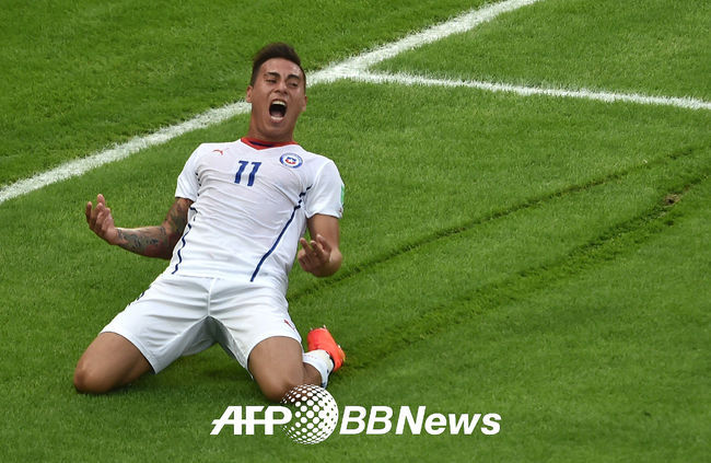 전반 칠레 바르가스가 선제골을 넣고 기뻐하고 있다./ photo@osen.co.kr < 사진 > ⓒAFPBBNews = News1