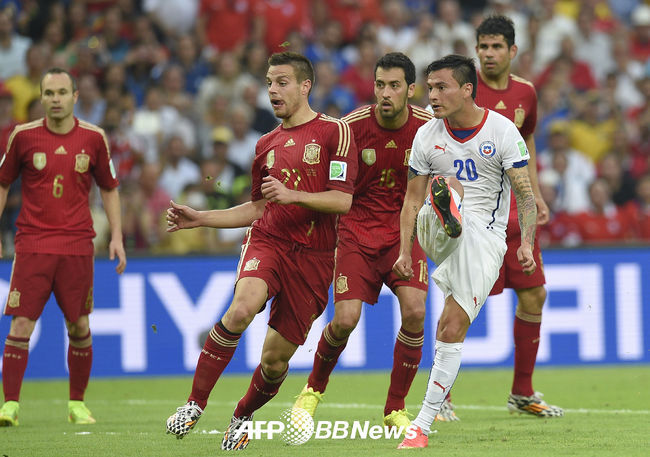 비센테 델 보스케 감독이 이끄는 스페인은 19일(이하 한국시간) 브라질 리우 데 자네이루의 에스타디오 두 마라카낭에서 열린 2014 브라질월드컵 조별리그 B조 2차전 칠레와 경기서 0-2로 패했다.